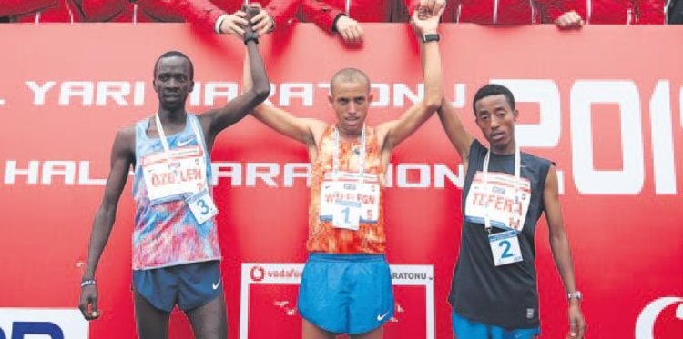 İstanbul'un eşsiz manzarasında dün Vodafone İstanbul Yarı Maratonu koşuldu. 13. kez düzenlenen organizasyonda atletler Yenikapı Miting Alanı önünden start aldı ve parkuru yine aynı noktada tamamladılar. Erkeklerde 59 dakika 50 saniyelik zamanıyla Etiyopyalı Amdework Walelegn 1. oldu. Aynı ülkeden Asefa Tefera 1.00.07 ile ikinciliği elde etti. Milli atletimiz Kaan Kigen Özbilen ise yarışı 3. bitirdi. Erkeklerde ipi ilk göğüsleyen isim olan Walelegn 59.50'lik derecesiyle 1.06.19'luk parkur rekorunu kırdı. Kaan Özbilen de 1.00.08'lik derecesiyle yeni Türkiye rekoruna imza attı. Ali Kaya'ya ait rekoru 8 saniye ile geliştirdi. Kadınlarda Etiyopyalı Ababel Yeshaneh 1 saat, 6 dakika, 22 saniyelik derecesiyle 1. oldu. Vatandaşı Roza Dereje, 1.00.07 ile ikinci, Kenyalı Chemtai Kipyokei 1.07.55 ile üçüncü oldu.