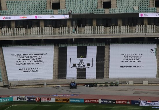 Cumhurbaşkanı Recep Tayyip Erdoğan'ın "Tüm imkanlarımızla dost ve kardeş Azerbaycan'ın yanında olmaya devam edeceğiz" ve Azerbaycan Cumhurbaşkanı İlham Aliyev'in "Türkiye-Azerbaycan birliği ve kardeşliği ebedidir" sözlerinin yer aldığı pankartlar da stada asıldı.