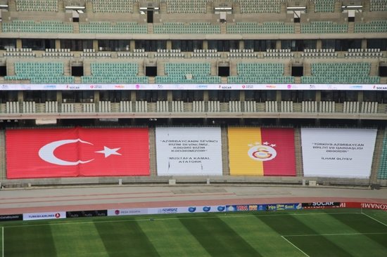 Galatasaray'ın Azerbaycan temsilcisi Neftçi ile oynayacağı UEFA Avrupa Ligi 2. Eleme Turu maçı öncesi Bakü Olimpiyat Stadyumu, Türkiye ve Azerbaycan kardeşliğine ilişkin pankartlarla donatıldı.