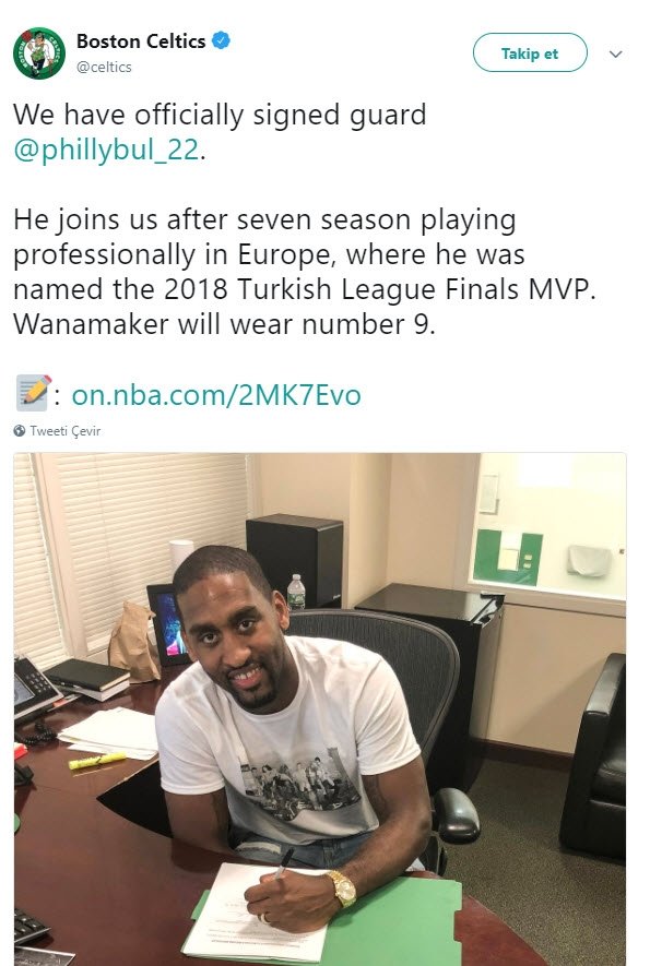 Boston Celtics Kulübünden yapılan açıklamada, 28 yaşındaki ABD'li basketbolcu Wanamaker ile sözleşme imzalandığı bildirildi. Sözleşmenin detaylarına yer verilmeyen açıklamada, Wanamaker'ın 9 numaralı formayı giyeceği belirtildi.