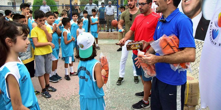 Basketbol eğitimine katılan öğrencilere Adana Büyükşehir Belediye Başkanı Hüseyin Sözlü'nün gönderdiği basketbol topu, meyve suyu ve kekler dağıtıldı. Çocuklar neşe içinde antrenmanlarını yaparken, ebeveynleri gururla izledi.