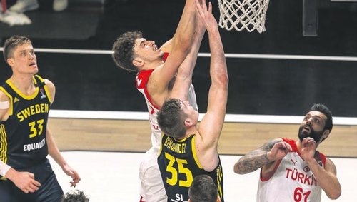 A Milli Erkek Basketbol Takımı, FIBA 2022 Avrupa Şampiyonası Elemeleri D Grubu 5. maçında İsveç'i 88-80 mağlup etti. İlk çeyreği 18-17 önde geçmeyi başaran A Milli Takımımız, ikinci periyotta da üstün bir oyun ortaya koydu. Türkiye, adam adama savunmayla rakibine izin vermediği periyodun sonunda devreyi 39-35 önde tamamladı.