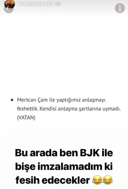 Beşiktaş Başkanı Fikret Orman, Trabzonspor'dan transferi büyük tartışma yaratan Mertcan Çam'la ilgili olarak da şok bir gelişmeden bahsederek, "Mertcan ile yaptığımız anlaşmayı fesh ettik. Anlaşma şartlarına uymadığı için böyle bir karar aldık" sözlerini sarf etmişti. Bu sözlerin ardından dün genç futbolcudan flaş bir açıklama geldi. Mertcan Çam instagram hesabından önce "Acaba beni hiç gördüler mi, saçlarım ne renk?", ardından da "Ben Beşiktaş ile bir şey imzalamadım ki fesih edecekler" mesajlarını paylaştı. Mertcan Çam, bu paylaşımlarının ardından hesabını kilitledi.