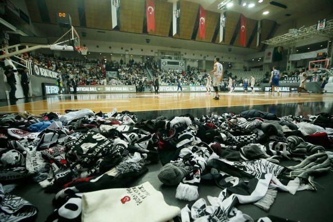 Siyah-beyazlı taraftarlar, ilk yarının bitimine 6 salise kala Beşiktaş Kulübünün organizasyonuyla sahaya atkı ve bere attı. İlk yarının bitmesinin ardından taraftarların atkı ve bere atması sürdü.