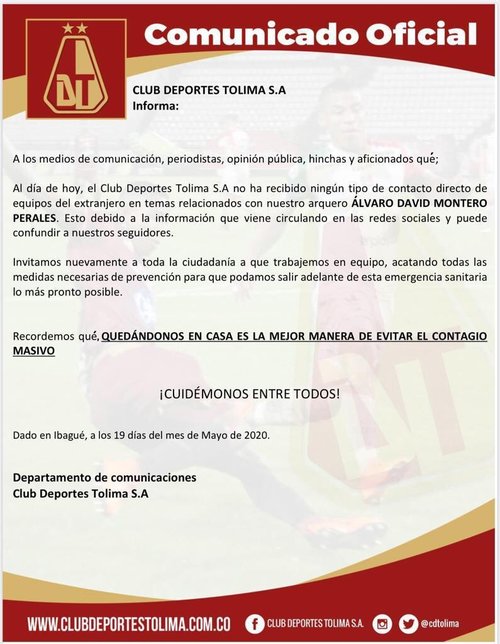Öte yandan Beşiktaş'ın, tecrübeli eldivenle anlaşma noktasına geldiği dahi belirtilirken, oyuncunun kulübü Tolima'dan konu ile ilgili resmi açıklama geldi.