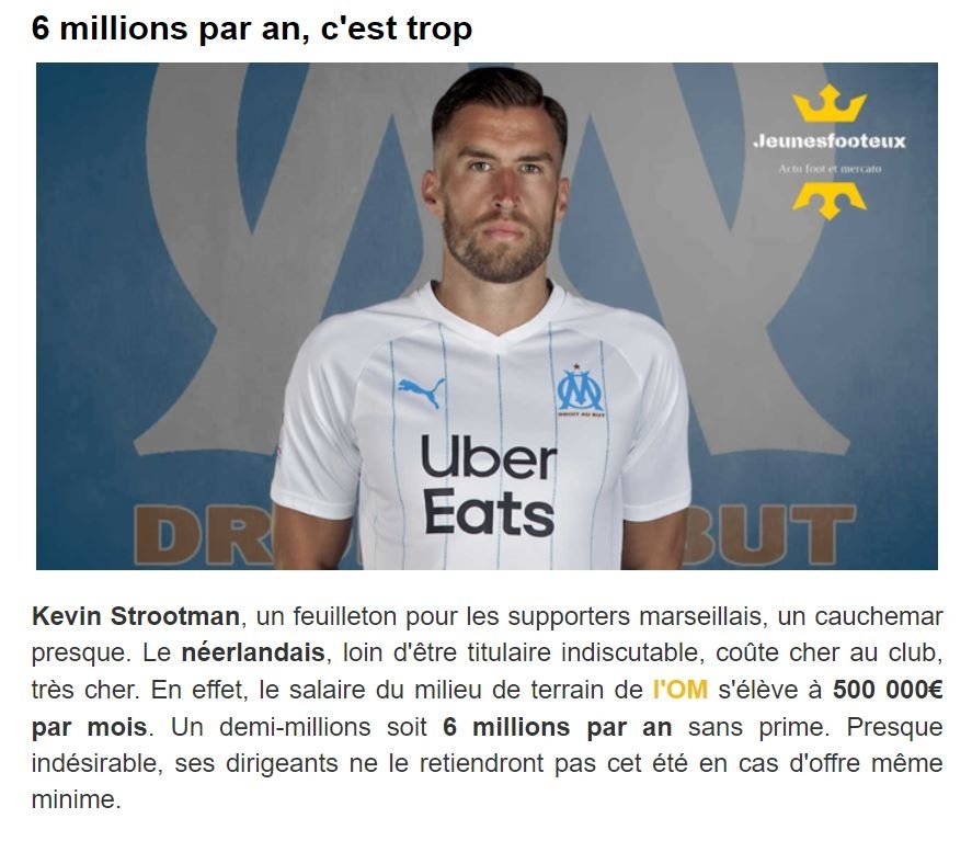 Öte yandan Olympique Marsilya yöneticilerinin, Strootman'ı alacak bir takım bulunamaması halinde oyuncunun sözleşmesini feshetmeyi bile düşündükleri belirtiliyor. Bu sezon tüm kulvarlarda 30 maça çıkan Kevin Strootman, 2 gol atarken 4 de asist yaptı. Tecrübeli futbolcu, 2018 yazında Roma'dan Marsilya'ya 25 milyon Euro bonservis bedeli ile transfer olmuştu.
