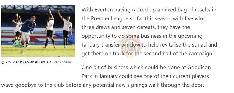 "Everton bu sezon Premier Lig'de şimdiye kadar beş galibiyet, üç beraberlik ve yedi mağlubiyetle istikrarsız bir görüntü sergilerken, ocak transfer döneminde kadroyu canlandırmak için bir fırsata sahipler.