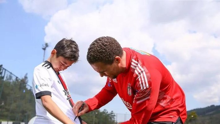 Fransız çalıştırıcı, idmanda yanına gelen Yavru Kartal'a sarıldı, ardından formasını imzaladı.