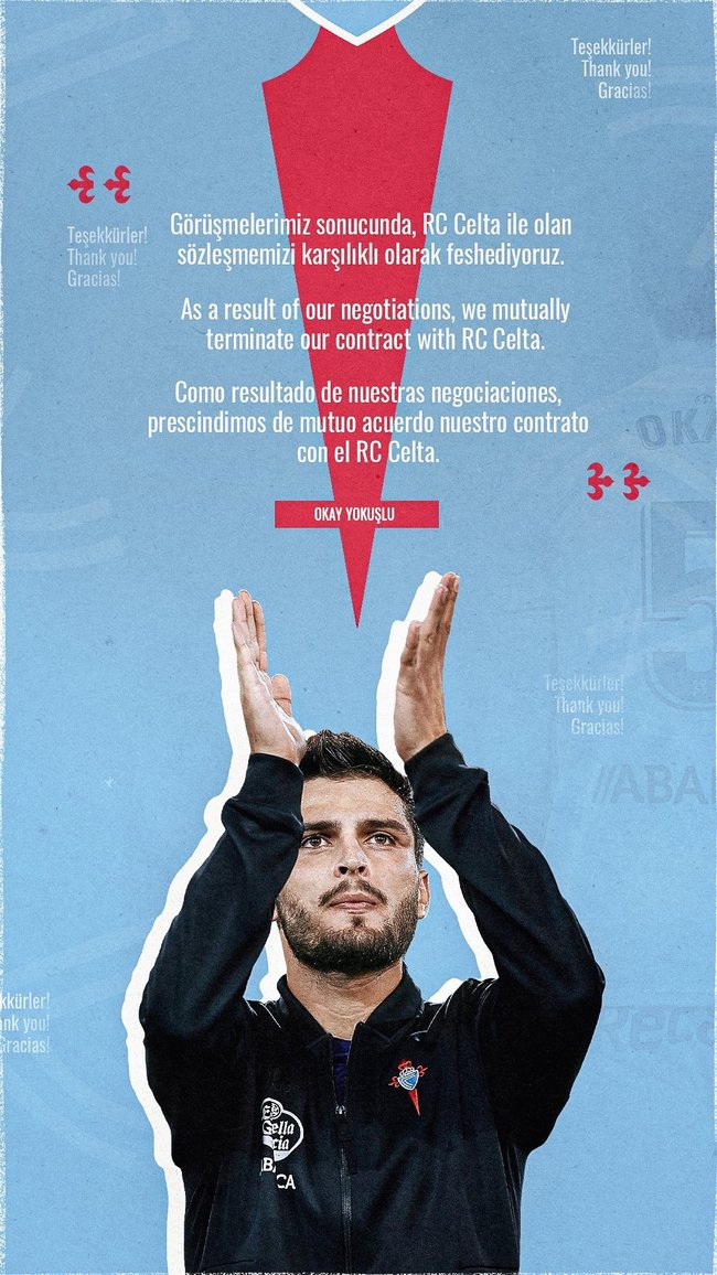 "Görüşmelerimiz sonucunda RC Celta ile olan sözleşmemizi karşılıklı olarak feshediyoruz."