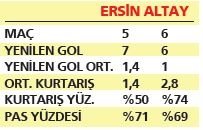 Hem Ersin Destanoğlu hem de Altay Bayındır performanslarıyla geçen sezonu aratıyor. İki eldiven de neredeyse her maçta kalesinde gol gördü. Altay kurtarış yüzdesi olarak Ersin'in bir adım önünde.