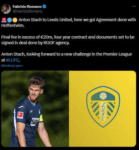 Beşiktaş'ta transfer çalışmaları sürüyor. Siyah-beyazlılar için orta saha bölgesine yapılacak transfer doğrultusunda Hoffenheim'da forma giyen Anton Levi Stach gündeme gelmişti. Alman futbolcu hakkında son olarak Beşiktaşlıları üzecek bir gelişme yaşandı. Premier Lig'in yeni ekibi Leeds United'ın 26 yaşındaki futbolcunun transferi için Hoffenheim ile anlaşmaya vardığı öğrenildi. Fabrizio Romano'nun haberine göre Stach, 20 milyon euronun üzerinde bir bonservis ücretiyle 4 yıllığına kendisini Leeds United'ın futbolcusu yapacak sözleşmeye imza atacak.
