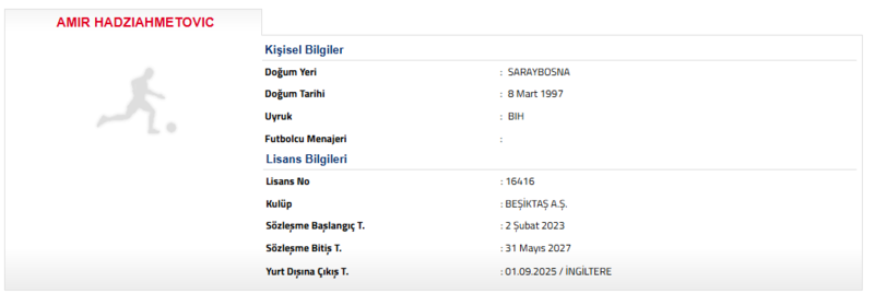 Beşiktaş, Bosna Hersekli orta saha Amir Hadziahmetovic'in, İngiltere Championship takımlarından Hull City'e transfer olduğunu TFF'ye bildirdi.