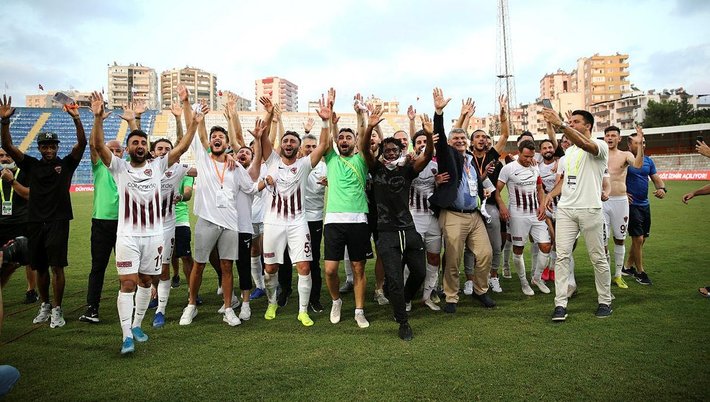 Hatay'dan tarihi şampiyonluk... TFF 1. Lig'de bu sezon performansıyla rakiplerinin kabusu olan bordo-beyazlılar, bitime 1 hafta kala şampiyonluğa ulaştı. Yenik duruma düştüğü Adanaspor karşısında sahadan 2-1'lik galibiyetle ayrılan Hatayspor, en yakın rakibinin 4 puan önünde zaferini ilan etti. Kulübün 53 yıllık tarihinde ilk defa Süper Lig'e çıkma başarısı gösteren Mehmet Altıparmak'ın öğrencileri, Adanaspor maçının bitiş düdüğünün ardından büyük sevinç yaşadı.