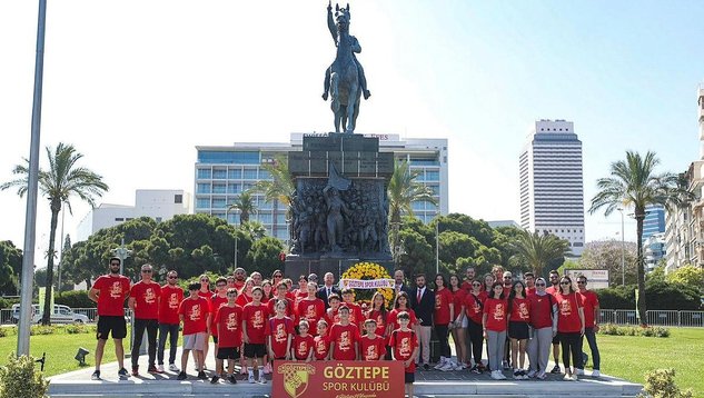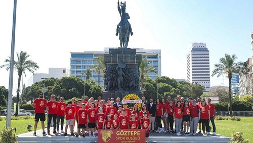 Türk sporunun köklü kulüplerinden Göztepe, 98. yaşını kutluyor. Kulübün kuruluş yıl dönümü dolayısıyla Cumhuriyet Meydanı'nda bir araya gelen Göztepeli yöneticiler ve sporcular, saygı duruşu ve İstiklal Marşı'nın ardından meydandaki Atatürk Anıtı'na çelenk bıraktı.