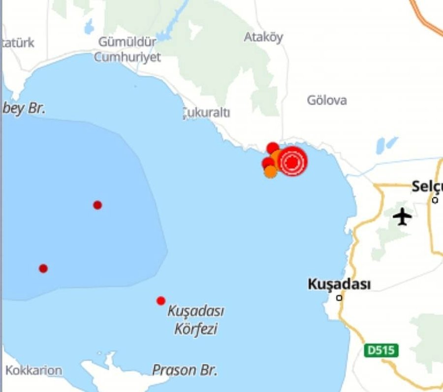 AFET ve Acil Durum Yönetimi Başkanlığı Deprem Dairesi Başkanlığı (AFAD) verilerine göre, Kuşadası Körfezi'nde 5.0 büyüklüğünde deprem meydana geldi. Bu depremden 6 dakika önce 3.8 büyüklüğünde bir deprem daha kaydedildi.