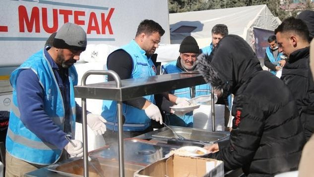 Türkiye Diyanet Vakfı (TDV) gönüllüsü milli güreşçimiz Rıza Kayaalp, Kahramanmaraş'ta depremzedelere ve sahada çalışan ekiplere yemek ikramında bulunmayı sürdürüyor. Kayaalp de Kahramanmaraş şehir merkezinde Ayşe Gümüşer İlkokulunun bahçesine TDV tarafından kurulan mobil mutfakta, depremzedelere ve sahadaki görevli ekiplere sıcak yemek dağıtımlarına katıldı. Hatay'ın ardından Kahramanmaraş'taki insani yardım çalışmalarına yardım ettiğini belirten Rıza Kayaalp, deprem bölgelerinde görevli ve gönüllülerin var güçleriyle çalıştığını ifade ederek, şunları kaydetti: "Türkiye Diyanet Vakfı olarak Kahramanmaraş'tayız. Depremin ilk gününden bu yana, burada mobil mutfak, aramakurtarma ve erzak dağıtımı başta olmak üzere büyük işler yapılıyor. Mobil mutfakta büyük kazanlarda yemek yapılıp günlük 10 bin kişiye üç öğün yemek dağıtılıyor. Milletimizin yapmış olduğu bağışları depremzedelere ulaştırmak için bütün vakıf gönüllüleri olarak sahada çok gayretli bir çalışma içerisindeyiz."