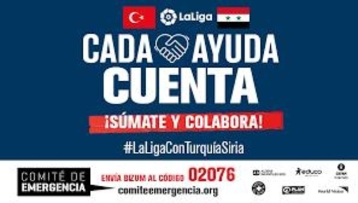 10ilimizi etkileyen 'Asrın Felaketi'nin ardından Türkiye ve Suriye'ye spor dünyasından destekler gelmeye devam ediyor. Son olarak İspanya La Liga'nın 21'inci haftasında oynanan Espanyol- Real Sociedad karşılaşmasında yardım çağrısı yapıldı. İki takım oyuncuları "Cada Ayuda Cuenta" (Her yardım önemlidir) panosu önünde fotoğraf çektirerek depremzedeler için yardım istedi.