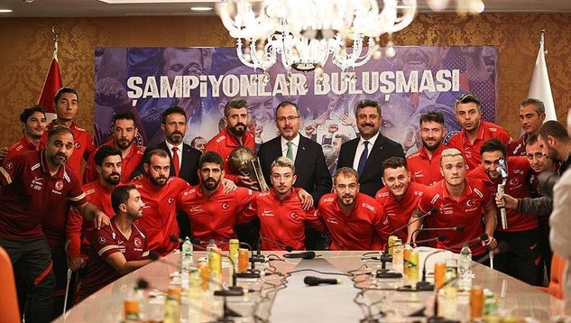 Gençlik ve Spor Bakanı Mehmet Muharrem Kasapoğlu, ülkemizde düzenlenen 2022 Ampute Futbol Dünya Kupası'nda zafere ulaşan Ampute Futbol Milli Takımı ile bir araya geldi. Bakan Kasapoğlu, "Alınan kupa bu işin zirvesi. İnanıyorum ki bundan sonraki süreçte bu yolculuk, bu tırmanış devam edecek" diye konuştu.