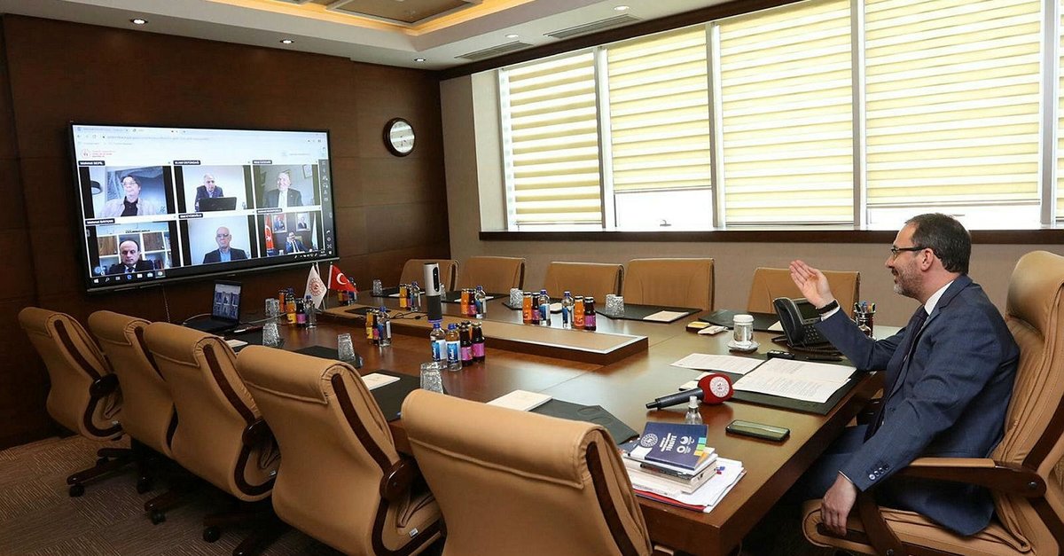 Gençlik ve Spor Bakanı Dr. Mehmet Muharrem Kasapoğlu, Türkiye Futbol Federasyonu (TFF) Başkanı Nihat Özdemir, Türkiye Basketbol Federasyonu (TBF) Başkanı Hidayet Türkoğlu, Türkiye Voleybol Federasyonu (TVF) Başkanı Mehmet Akif Üstündağ, Türkiye Hentbol Federasyonu (THF) Başkanı Bilal Eyüboğlu, Kulüpler Birliği Vakfı Başkanı Mehmet Sepil ve Spor Hizmetleri Genel Müdürü Mehmet Baykan ile video konferans aracılığı ile toplantı düzenledi. Toplantıda, liglerin geleceği, sporcu sağlığı ile ilgili alınması gereken tedbirler, kulüplerin bu süreçte yaşayacağı finansal sorunlar ve halk sağlığı konuları ele alındı.