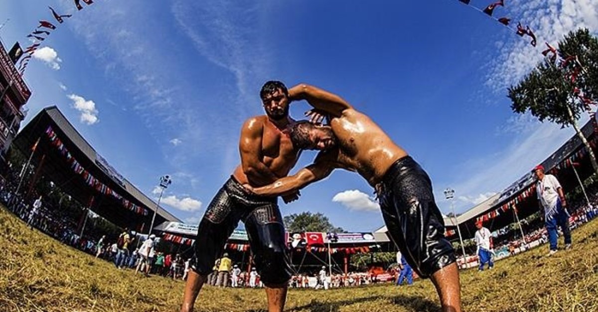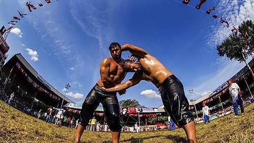 Edirne Sarayiçi Er Meydanı'nda 1 Temmuz Cuma sabahı başlayıp, 3 Temmuz Pazar akşamı bitecek 661. Tarihi Kırkpınar Yağlı Güreşleri öncesi başpehlivanlar son yağlı antrenmanlarını yaptı. Yarın saaat 18.00'de resmi açılış töreni düzenlenecek.