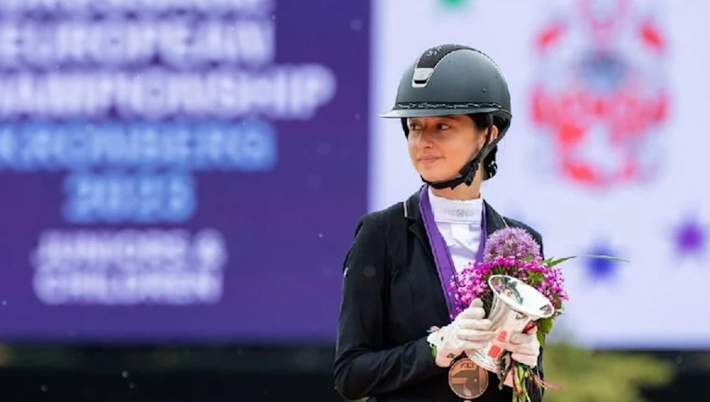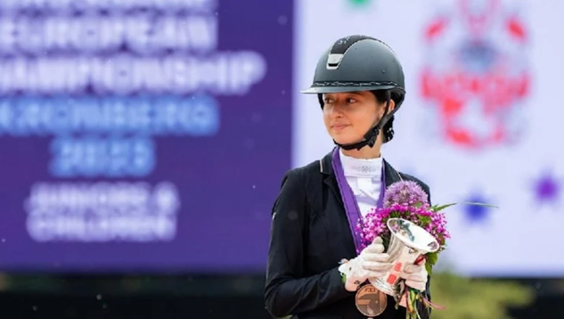 Milli sporcu Lal Mira Gürgen, Almanya'da düzenlenen Yıldız ve Genç Biniciler At Terbiyesi Avrupa Şampiyonası'nı üçüncü sırada tamamladı. Avrupa Şampiyonası'nda 3. olan La Mira Gürgen, binicilik tarihimizde bu kategoride ilk madalyayı kazandırdı. Yarış sonunda tebrikleri kabul etti.