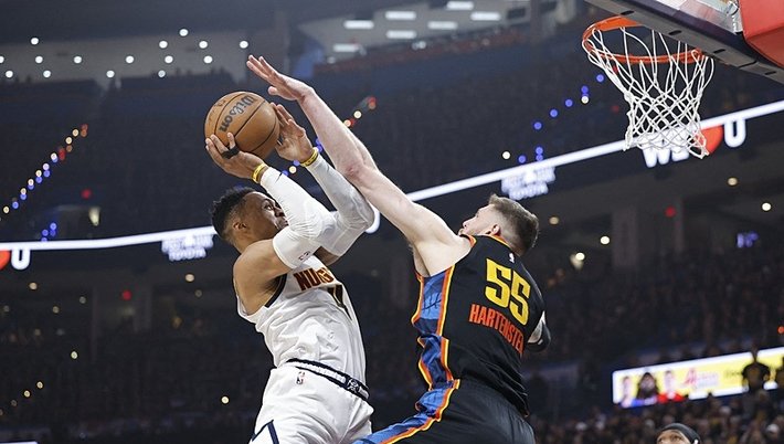 NBA play-off'larına 2 maçla devam edildi. Batı Konferansı'nın yarı final serisi ikinci maçında Nuggets'ı Paycom Center'da konuk eden Thunder, müsabakayı 43 sayı farkla kazandı.