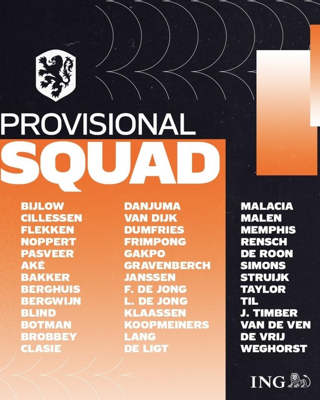 İŞTE HOLLANDA'NIN GENİŞ ADAY KADROSU