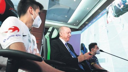 Başkan Recep Tayyip Erdoğan, AK Parti'nin Gençlik Kolları tarafından düzenlenen e-Spor turnuvasının final maçını izledi. AK Parti Genel Merkezi'nde düzenlenen turnuvanın finalinde gençlerin Paris Saint-Germain ile Liverpool takımları karşı karşıya geldi. Paris Saint-Germain'in Liverpool'u 3-2 yendiği maçı izleyen Erdoğan, burada yaptığı konuşmada, Paris Saint-Germain'in kolektif futbolu Liverpool'a göre daha iyi oynadığını belirtti.