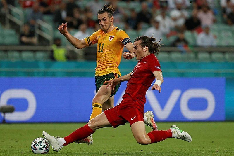Kaan Ayhan'ın hatalı pasında topu kapan Gareth Bale, Çağlar ile bire bir kaldı.