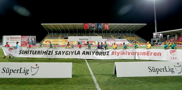 Göztepe'nincezası nedeniyle sarı-kırmızılı taraftarların izleyemediği müsabakaya karşılaşmanın hakemleri ve iki takımın futbolcuları birlikte "Şehitlerimizi saygıyla anıyoruz #iyikivarsınEren" yazılı pankartla çıktı. Ayrıca karşılaşmadan önce Trabzon'un Maçka ilçesi kırsalında bölücü terör örgütü mensuplarıyla sağlanan sıcak temasta şehit olan 16 yaşındaki Eren Bülbül ve Jandarma Astsubay Kıdemli Başçavuş Ferhat Gedik için 1 dakikalık saygı duruşunda bulunuldu.