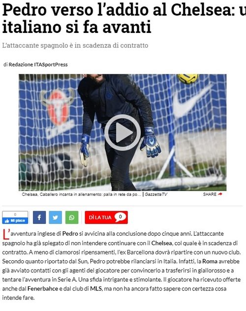 Çizme'de yer alan habere göre, Pedro'nun 5 yıllık Chelsea macerası sona eriyor. İspanyol yıldız, mavi beyazlılarda devam etmek istemediğini daha önce açıklamıştı. Karyerinde yeni bir hikaye yazmak isteyen Pedro, önüne gelen teklifleri değerlendirmeye karar verdi.