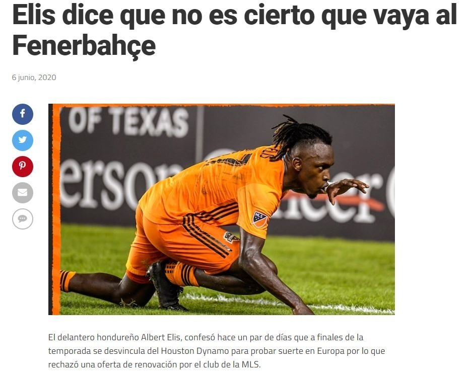 MLS ekiplerinden Houston Dynamo'da forma giyen 24 yaşındaki forvet oyuncusu Alberth Elis, geleceğiyle alakalı flaş açıklamalarda bulundu. Honduras basınından Diario Mas'ta yer alan habere göre Elis, Fenerbahçe'nin kendisi ile ilgilendiği yönündeki iddialar üzerine şunları dile getirdi: