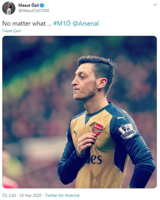 Karşılaşma öncesi en çok tartışılan konulardan biri de Arsenal'in Türk asıllı futbolcusu Mesut Özil'in, müsabaka kadrosuna alınmamasıydı. Son dönemlerde adı Fenerbahçe ile transfer dedikodularına karışan Mesut, sosyal medya hesabından manidar bir paylaşım yaptı. Arsenal logosunu tuttuğu bir fotoğrafını yayınlayan yıldız isim, "Ne olursa olsun..." yazarak taraftara ve Arteta'ya mesaj yolladı.