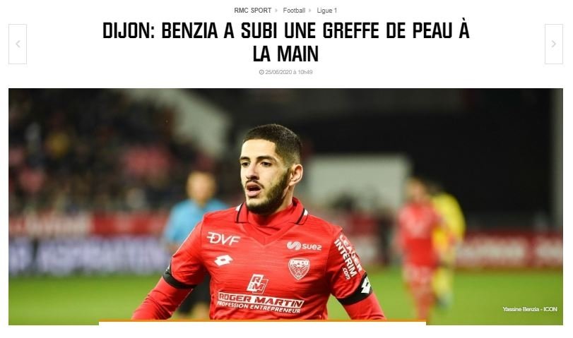 Bir dönem Fenerbahçe'de kiralık olarak forma giyen Yassine Benzia, geçtiğimiz mayıs ayında buggy tarzı araçla kaza geçirmiş ve yıldız futbolcu sol elinden ciddi biçimde yaralanmıştı. Kaza sonrası operasyon geçiren Cezayirli oyuncuya deri nakli yapıldığı açıklandı.