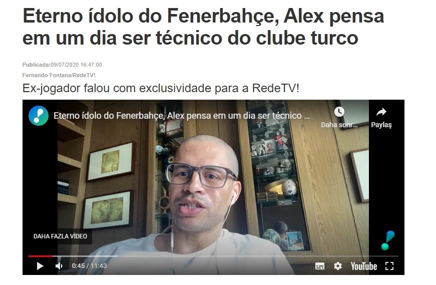 Fenerbahçe'nin efsane ismi Alex De Souza, Brezilya basınına önemli açıklamalarda bulundu.