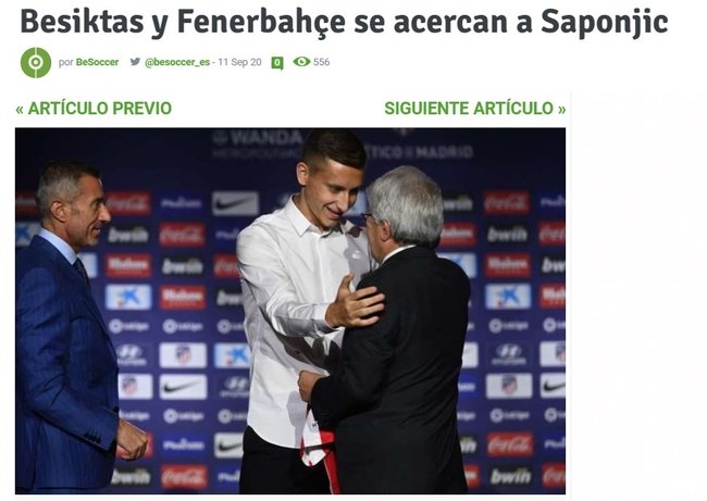 2022'ye dek Atletico Madrid ile sözleşmesi bulunmasına karşın ayrılmak istediği dile getirilen Saponjic'in de, Beşiktaş ve Fenerbahçe'nin kendisine olan ilgisinden memnun olduğu ve her iki kulübü de değerlendirmeye aldığı aktarıldı.
