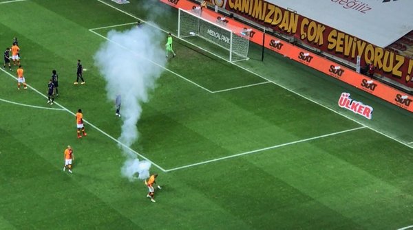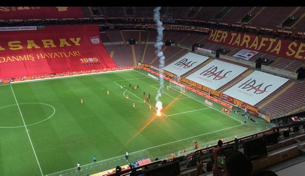 Süper Lig'in 3. haftasında Galatasaray ile Fenerbahçe dev derbi maçında karşı karşıya geldi. Corona virüsü salgını önlemleri nedeniyle seyircisiz olarak oynanan mücadelede ilginç bir an yaşandı. Müsabakanın henüz başında stadyum dışından sahaya meşale atıldı. Hakem Ali Palabıyık yabancı maddenin oyun alanının dışına çıkarılmasının ardından maçı devam ettirdi.