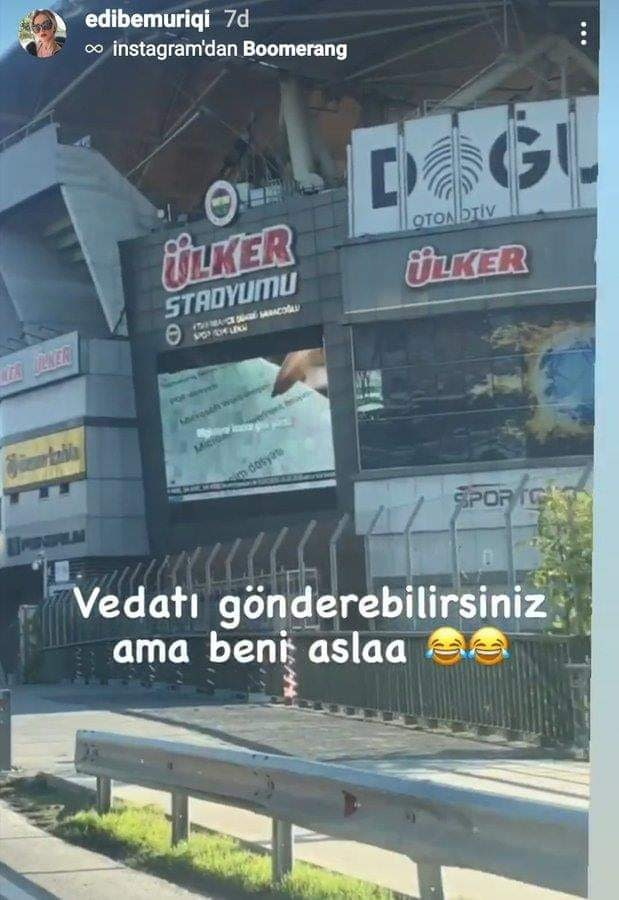 Ülker Stadyumu'nun fotoğrafını sosyal medya hesabından paylaşan Edibe Muriqi, "Vedat'ı gönderebilirsiniz ama beni asla" şeklinde not düştü.