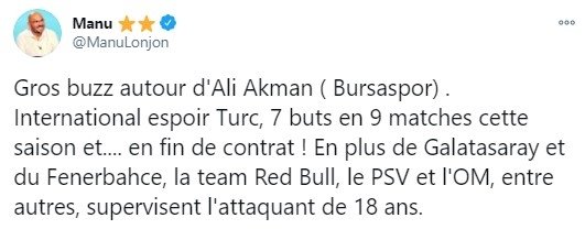 İstanbul devlerinin transferi için yoğun mesai harcadığı bilinen Ali Akman'a dair son iddia Fransa'dan geldi.