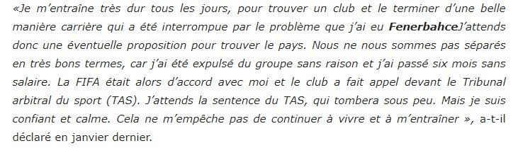 Kameni konuşmasının devamında, "Takımdan sebepsiz yere gönderildim ve 6 ay parasız kaldım. Bu nedenle Fenerbahçe'den iyi ayrılmadım. FIFA ile daha sonra anlaştım ve CAS'a temyize gitti. CAS'tan kısa süre içerisinde karar çıkmasını bekliyorum. Kendime güveniyorum ve sakinim. Bu, kariyerimi ve çalışmamı engellemiyor." ifadelerini kullandı.