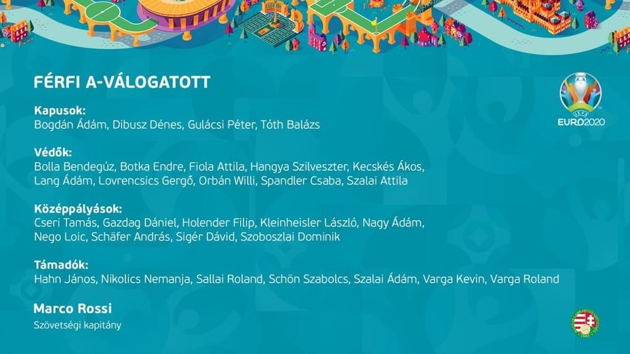 Fenerbahçeli Attila Szalai ve Kasımpaşalı Kevin Varga, Macaristan'ın EURO 2020 aday kadrosuna çağrıldı. Macaristan'ın 30 kişilik aday kadrosu: