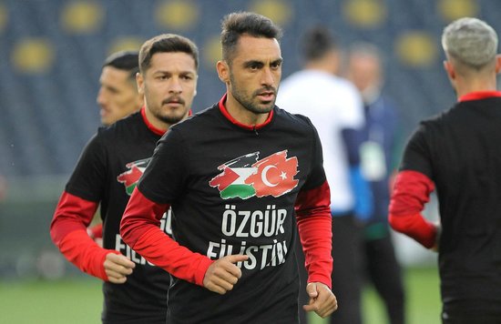 Her iki takım da tişörtlerinde İsrail'in Filistin halkına yönelik saldırılarını protesto eden sloganlar bulundurdu.