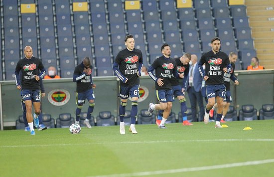 Ülker Stadı'ndaki karşılaşma öncesinde her iki takımda sahaya Filistin'e destek amacı taşıyan 'Özgür Filsitin' tişörtlerle çıktı.