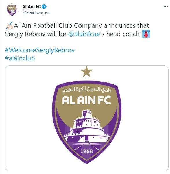 Al Ain'den yapılan açıklamada, "Yeni teknik direktörümüz Sergei Rebrov olmuştur" ifadeleri kullanıldı.