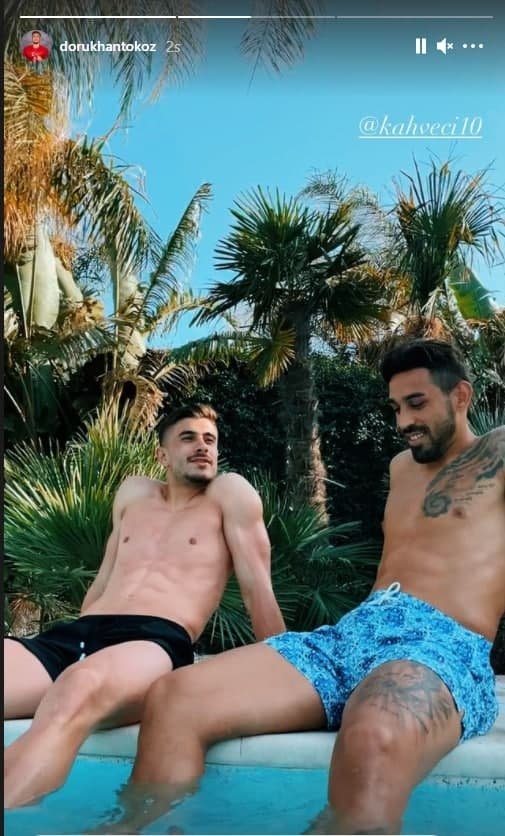 Beşiktaş ile sözleşmesi 30 Haziran'da sona erecek olan Dorukhan Toköz'ün yeni adresi merak konusu olmuşken sürpriz bir gelişme yaşandı. Fenerbahçe'nin transfer gündeminde yer alan Dorukhan'ın, sarı-lacivertlilerin yıldızı İrfan Can Kahveci ile tatil yapması iddiaları artırdı. İki futbolcunun sosyal medya hesabından yaptıkları havuzlu paylaşım Fenerbahçe taraftarını heyecanlandırdı.