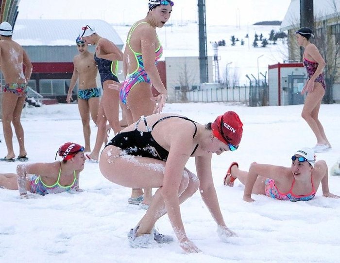 Yüzmeye 5 yaşında başladığını belirten milli yüzücü Elanaz Özdemir (15), 1,5 yıldır sporcusu olduğu Fenerbahçe Kulübü'nde, Roma'da yapılan 'Avrupa Gençler Şampiyonası'nda 4x200 bayrakta 3'üncülük ve Türkiye Şampiyonası'nda kulüpler arası genç kadınlarda 1'incilik gibi birçok başarıya imza attığını vurguladı. Özdemir, "Hedefim, 2024 olimpiyatlarına kota kazanmak, Avrupa ve Dünya Gençler Şampiyonası'na gitmek. Yoğun antrenman sonrası kara girmek bir şok etkisi yaratıyor çünkü antrenmanda vücut ısısı ve nabız yükseliyor. Bir anda kara girdiğinde bir şok yaşıyorsun ama iyi geliyor yani böyle vücudu kendine getiriyor. Tekrardan rahatlama hissi veriyor. Kampa geldiğimizden beri her gün her antrenmanda yapıyoruz" dedi.