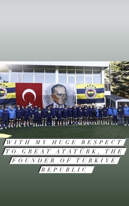 Portekizli teknik adam, sabahki idmanda takım olarak çektirilen fotoğrafı paylaşıp, "Türkiye Cumhuriyeti'nin kurucusu, Yüce Atatürk'e büyük saygılar" ifadesini kullandı.