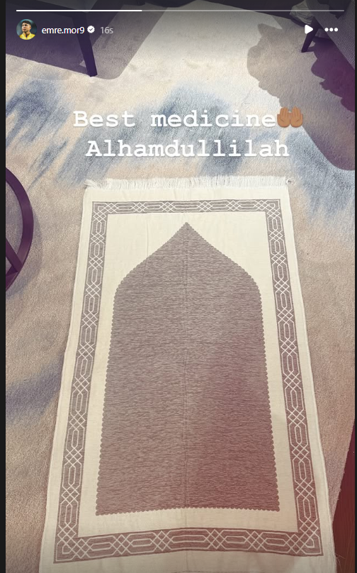 Fenerbahçe'nin futbolcusu Emre Mor, sosyal medya hesabından anlamlı bir paylaşım yaptı. Milli oyuncu, paylaşımında "En iyi ilaç. Elhamdülillah." ifadelerini kullandı ve bu sözlerle birlikte bir seccade fotoğrafı paylaştı.