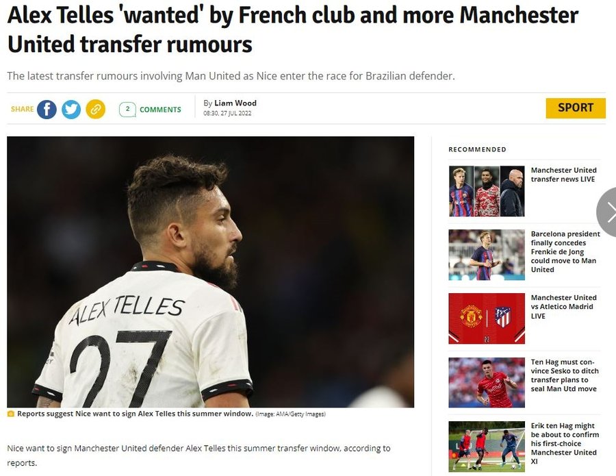 Fransa Ligue 1 ekiplerinden Nice, İngiltere Premier Lig devi Manchester United'da forma giyen Alex Telles'i renklerine bağlamak istiyor.