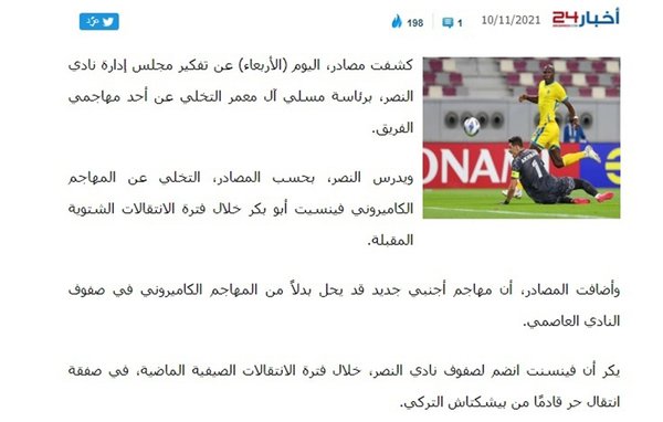 Suudi Arabistan basınından Akhbaar'ın haberine göre, Al Nassr yönetimi önümüzdeki ara transfer döneminde Aboubakar ile yolları ayırma kararı aldı.